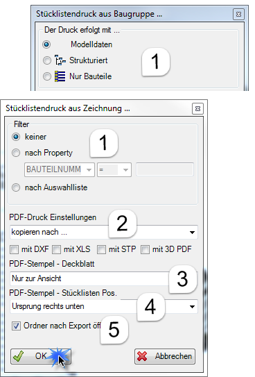 Optimieren Sie Ihren Druckprozess: Drucken Sie aus einer Stückliste alle Einzelteil Zeichnungen oder Exportieren Sie Daten als PDF / STEP / DXF .