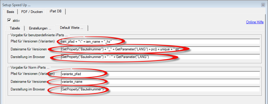 SpeedUp Inventor Allgemeines Setup Basis Tool Drucken Einstellungen Kunden Formulare